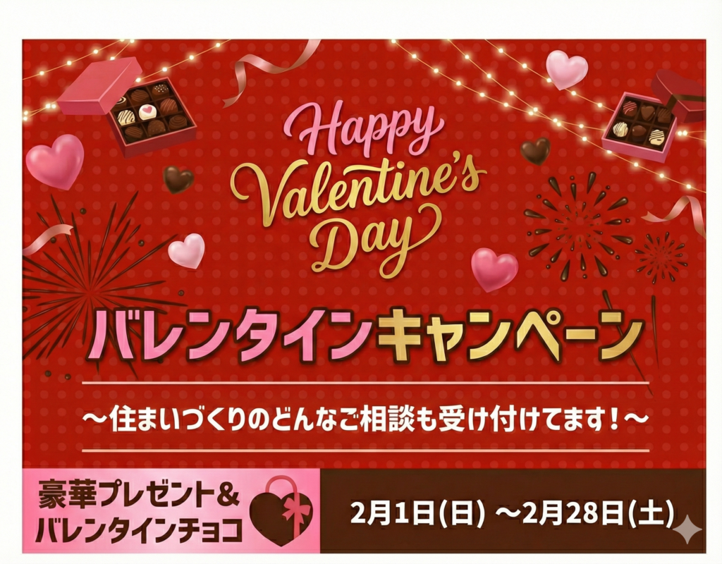 2月は、お家づくりを彩る特別な1ヶ月。 「いつかはマイホーム」とお考えの方も、「最新の設備を見てみたい」という方も、この機会にぜひモデルハウスへ遊びに来ませんか?